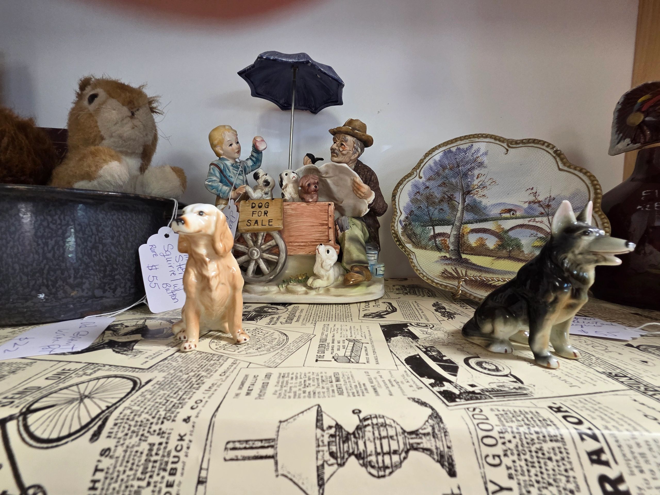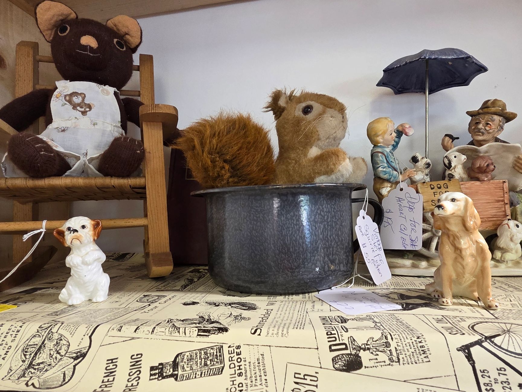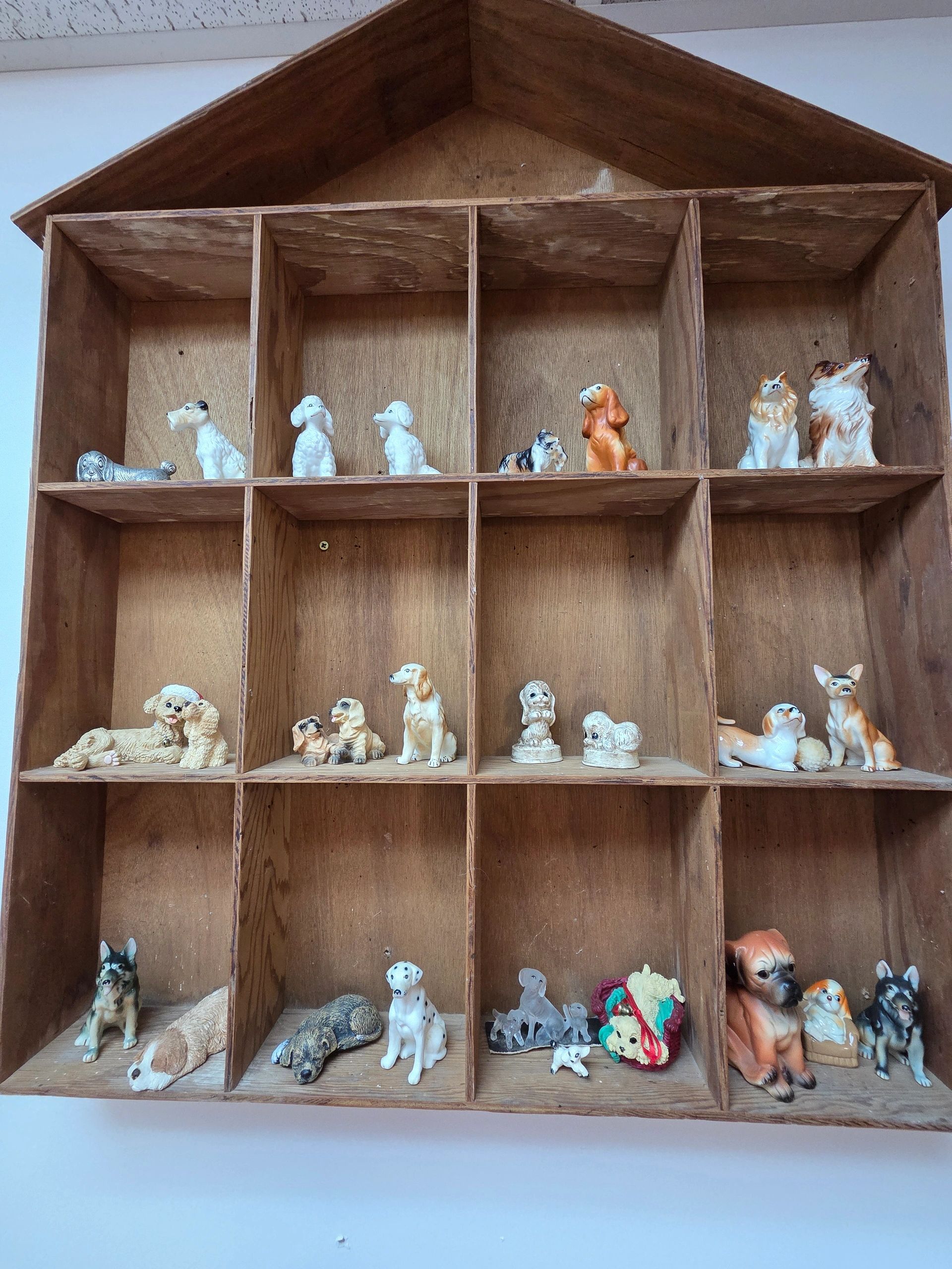 One glimpse at Mary Anne's shelf and you will immediately think back to a time when things were simple. From a selection of teddy bears and other items that are a collector's dream, you will find a selection of well cared for dog figurines in all sizes and breeds! If you are looking for that special piece that reminds you of a beloved pet, chances are you will find them on her shelf in the front room or in the wall mounted dog house by the front door.